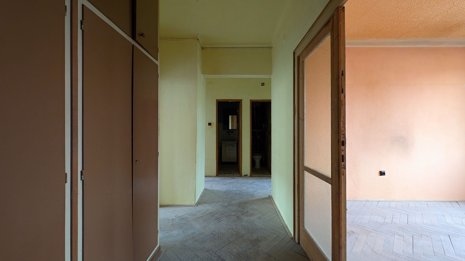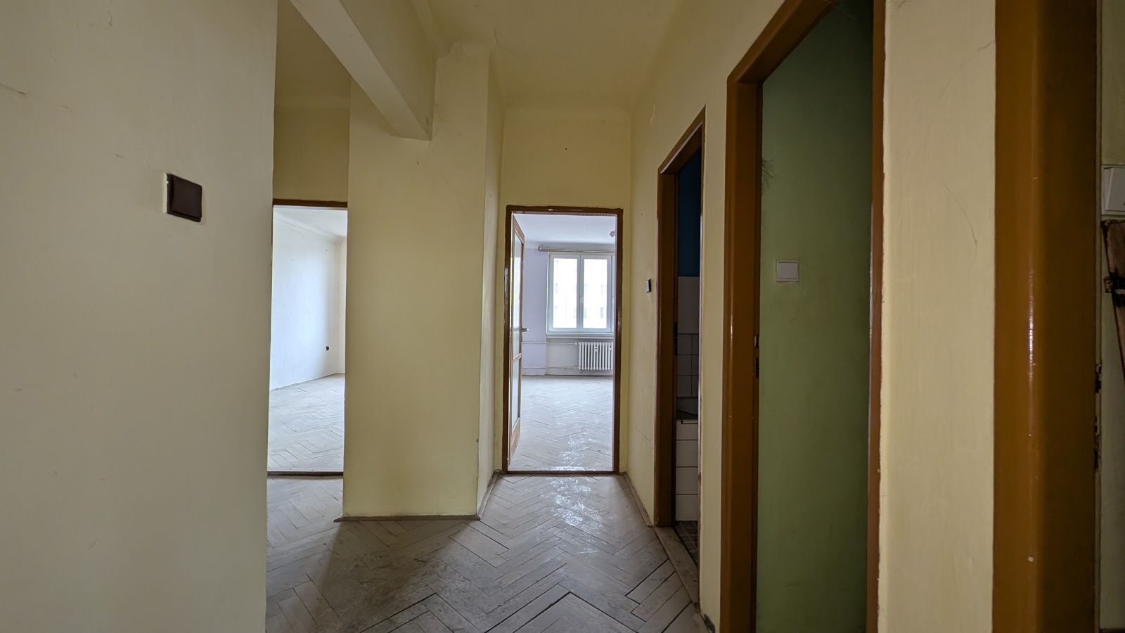 Prostorný byt 3+1 o výměře 74,9 m² ve 3. nadzemním podlaží nabízí velmi dobře využitelnou dispozici s více samostatnými pokoji. Byt je ve výrazně opotřebeném stavu – původní podlahy, povrchy i technické části – a je určen k celkové rekonstrukci.