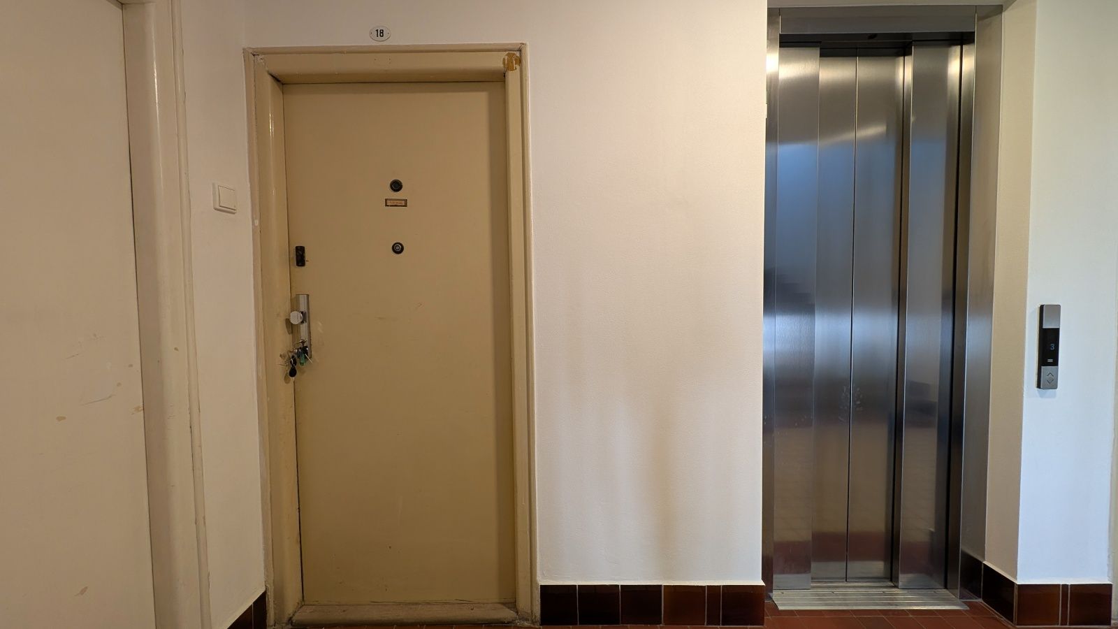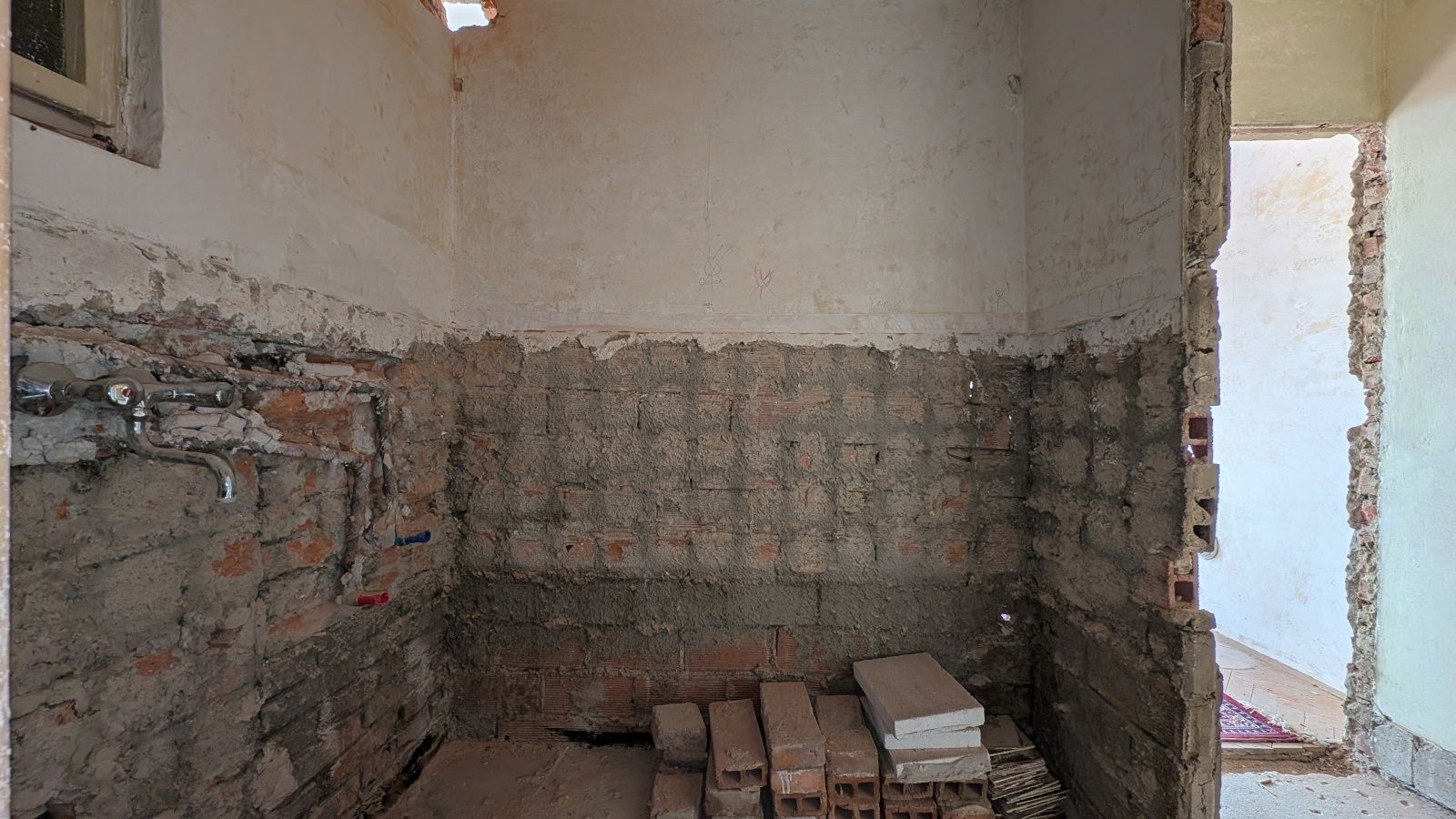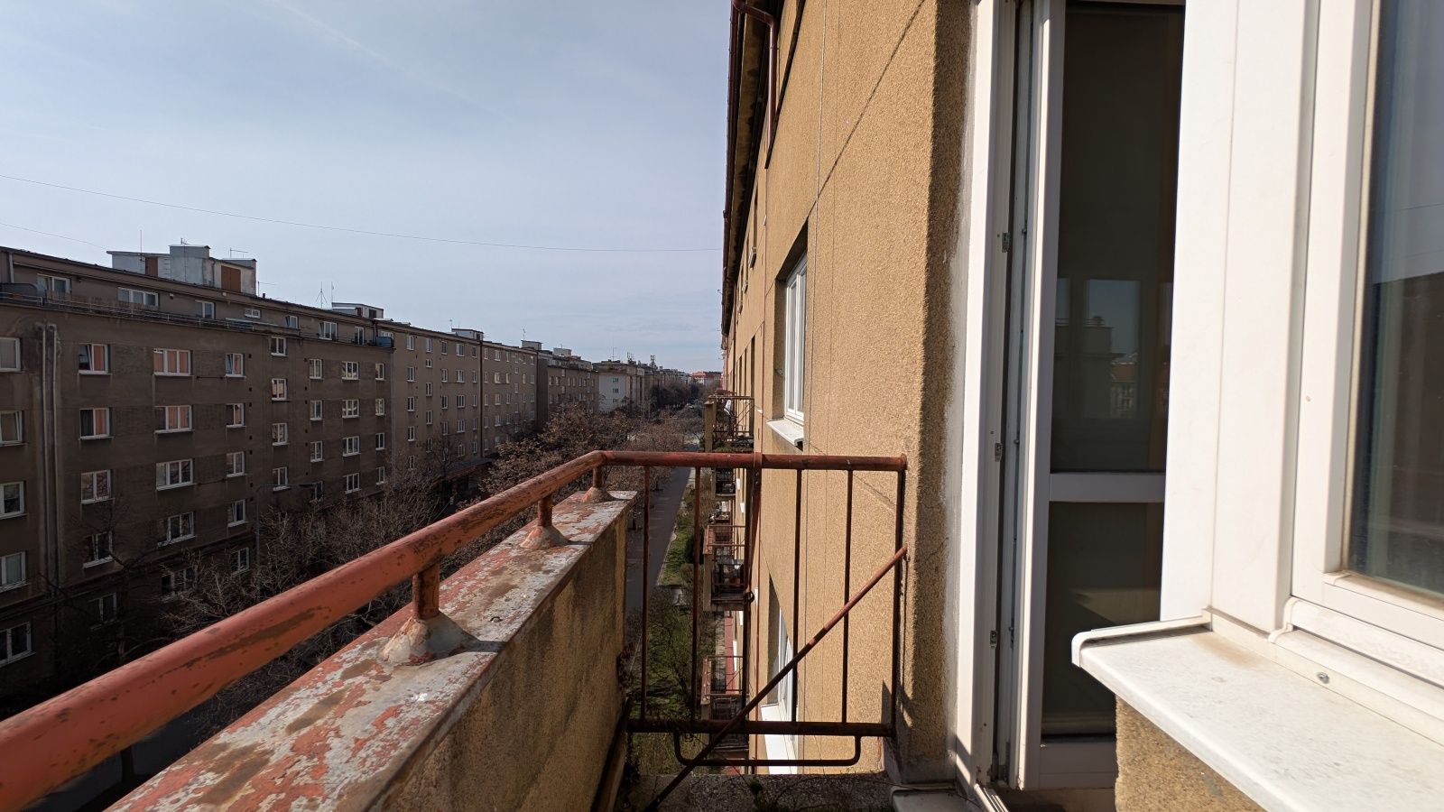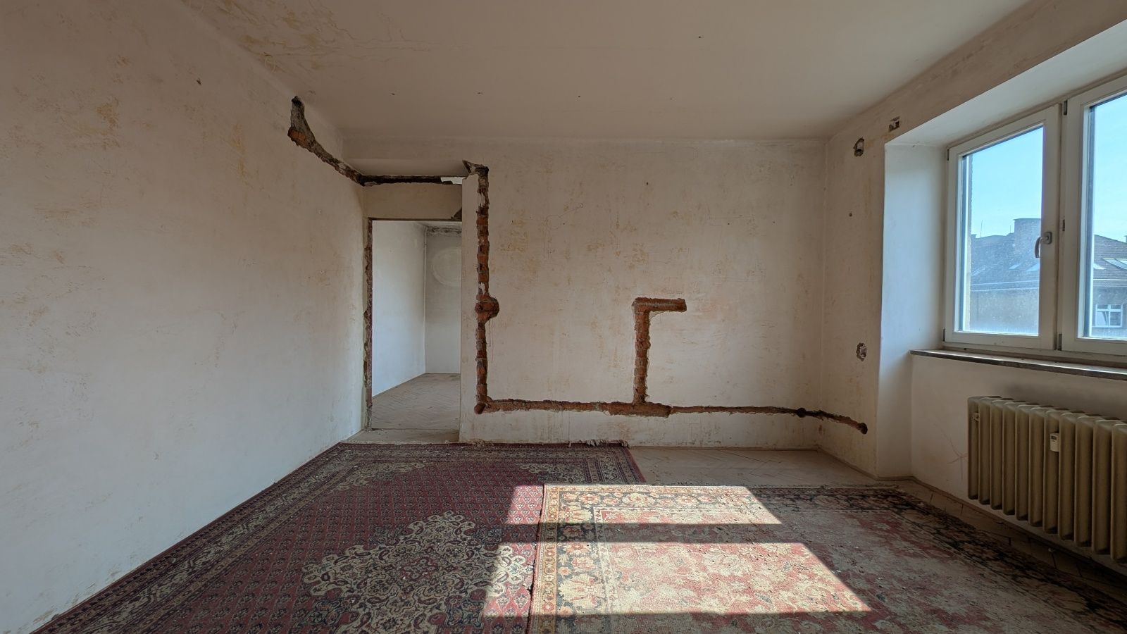 Byt 2+1 o výměře 56,8 m² v 5. nadzemním podlaží. Jednotka je ve velmi špatném technickém stavu – odstraněné části interiéru, odkryté konstrukce – a je určena k celkové rekonstrukci.