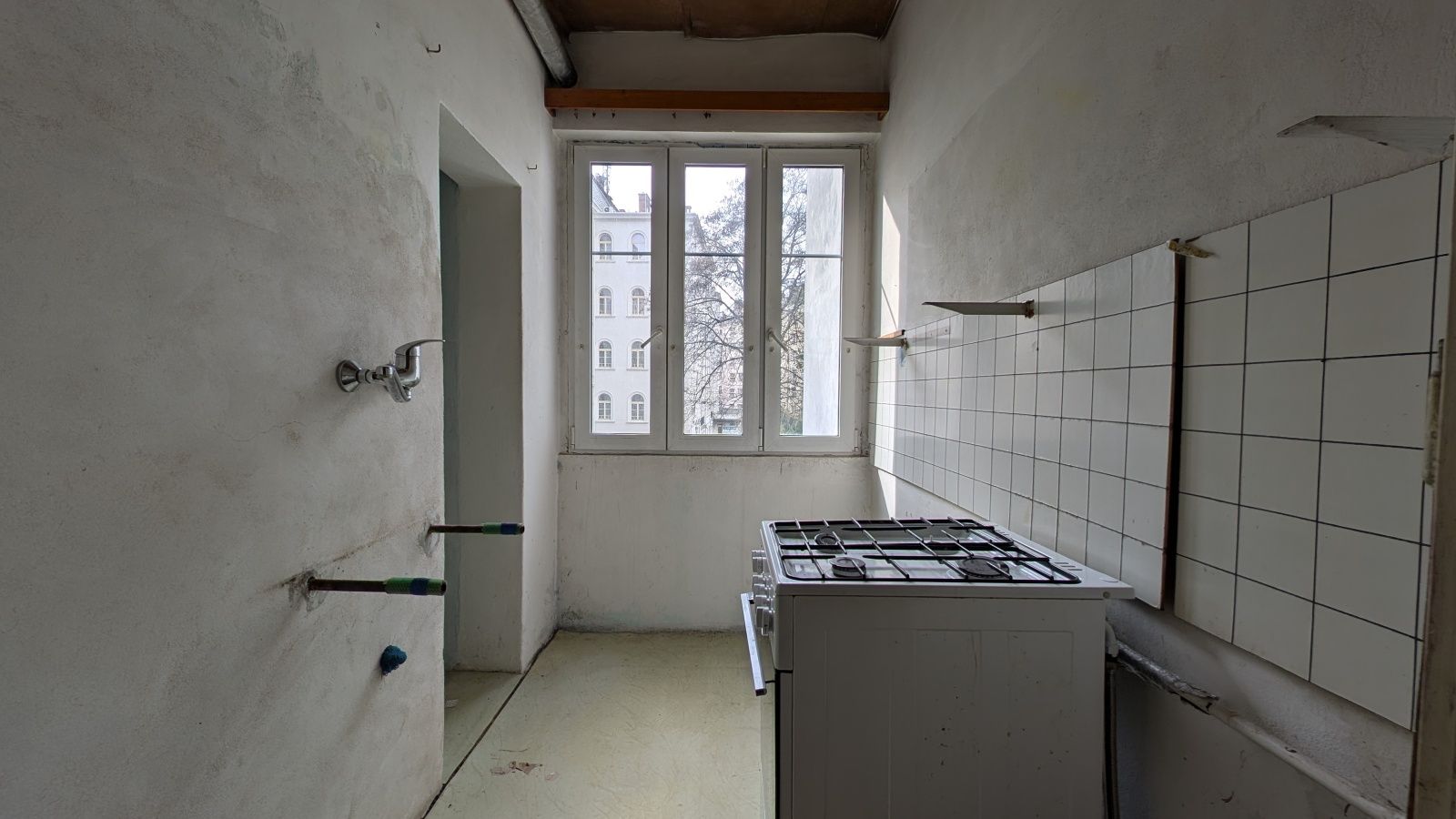 Byt 1+1 o velikosti 52,2 m² ve 2. nadzemním podlaží nabízí nadstandardní prostor pro tuto dispozici. Jednotka je ve výrazně opotřebeném stavu a vyžaduje kompletní rekonstrukci.