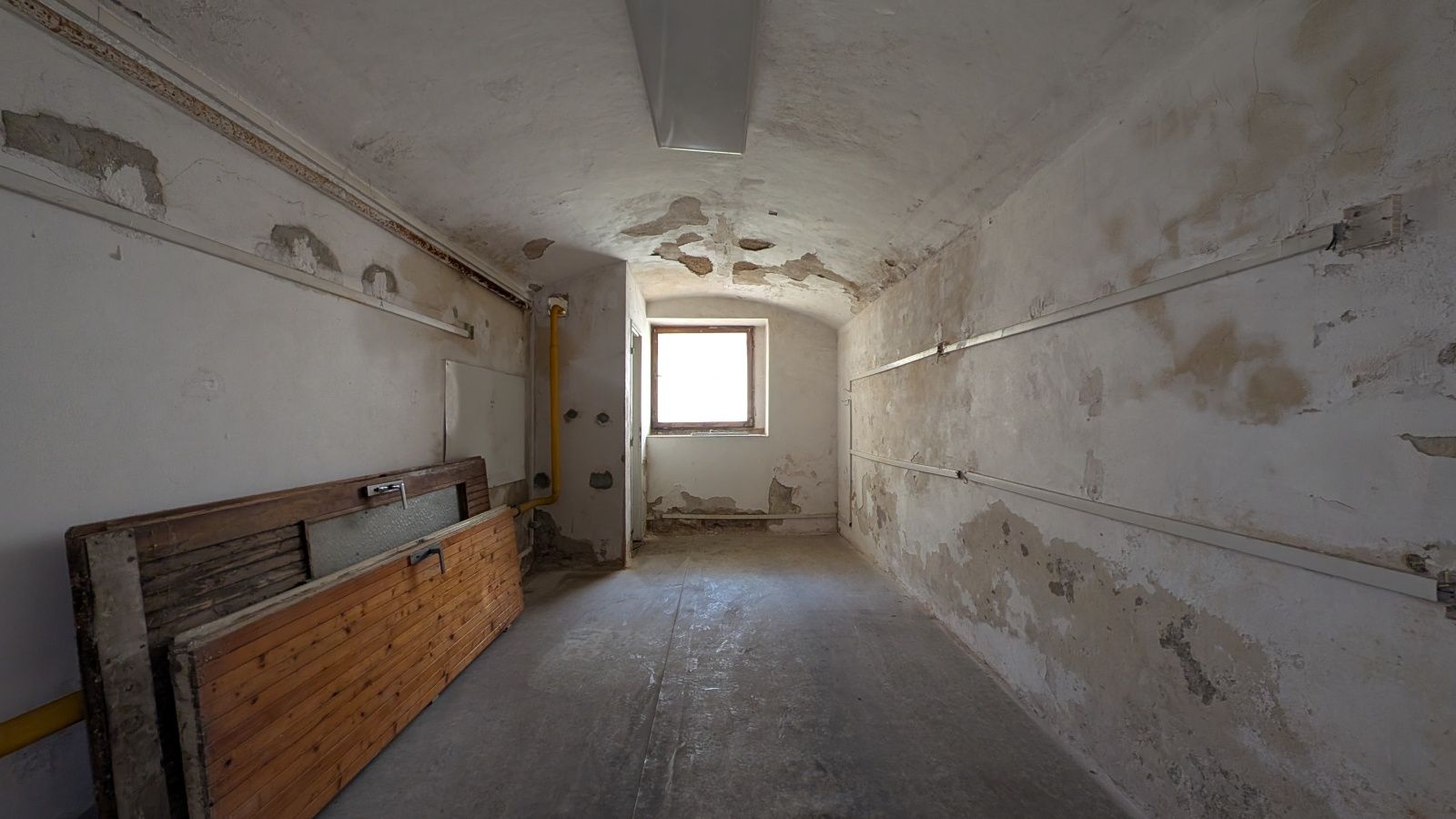 Jedná se o nebytovou jednotku typu „sklad“ situovanou v 1. NP měšťanského domu. Prostor má protáhlý obdélníkový půdorys (délka přes 12 metrů) s výškou stropu až 2,58 m. Jednotka je v neudržovaném stavu před kompletní rekonstrukcí, vykazuje známky opotřebení povrchů a podlah. Svým charakterem je prostor ideální jako skladové zázemí pro okolní podnikatele, soukromý archiv nebo malá řemeslná dílna. Prohlídky se uskuteční v termínech 18. 4. 2026 od 10:00 do 11:20 hod. a 9. 5. 2026 od 10:00 do 11:20 hod.